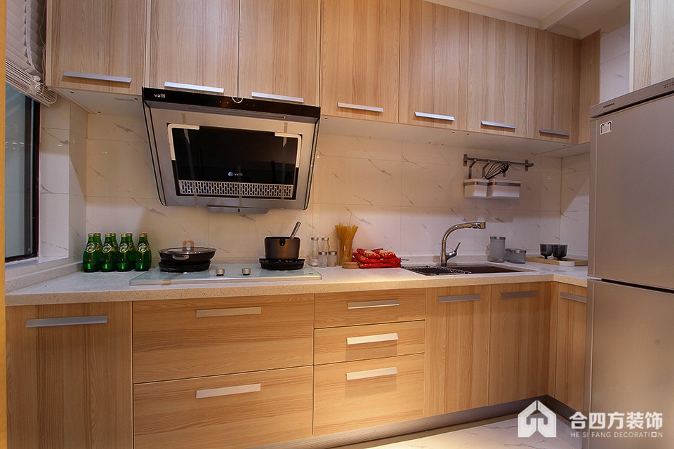 案例说明:客厅区域更具时尚气息,窗帘的色调明快又优雅,电视墙只是简单的做了组合柜,就具备了功能性和某种装饰感,三件套的组合大方又美观,一切看起来简单、随意。