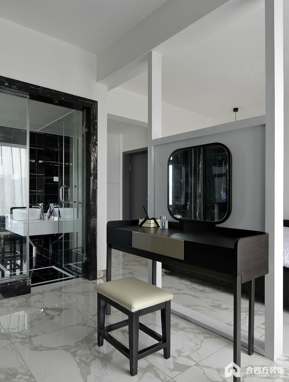 案例说明:删繁就简,去伪存真,以颜色的高度凝练和造型的极度简练,在满足功用需求的前提下,将空间、人及物进行合理精美的组合,用最简练的笔触,描绘出最丰厚动人的空间作用,这是设计艺术的最高境地。
