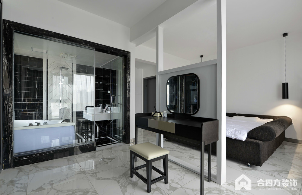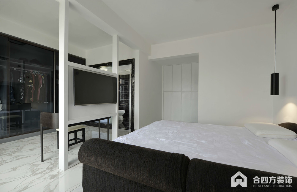 案例说明:删繁就简,去伪存真,以颜色的高度凝练和造型的极度简练,在满足功用需求的前提下,将空间、人及物进行合理精美的组合,用最简练的笔触,描绘出最丰厚动人的空间作用,这是设计艺术的最高境地。